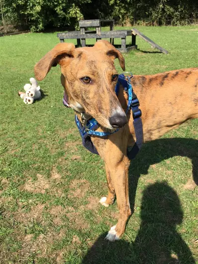 I'm a 8-year-old Lurcher from Hertfordshire rehoming centre and I'm looking for my forever home. Please read my profile below to find out more.Affectionate and friendly, Amber is an absolute pleasure to have around. With her sweet nature and gentle personality, she makes a wonderful companion. She likes meeting new people, but can be a little sensitive at first. However, once she warms up to you, she will be your best friend. It also helps if you have some tasty treats as this is the way to her heart!Amber loves her walks, although she isn't a fan of walking in the rain! On walks, Amber likes to explore all the good sniffs and will make a great companion if you want to keep your steps up. Amber loves her home comforts and is happiest when curled up in a cosy dog bed or on the sofa.Amber is happy to have some doggie friends, but would best suited not to share her home with another dog. She isn't suited to living with cats or small animals, as they would be too much fun to chase! She’d b...