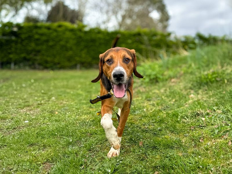 Are you right for Balder?Say hello to Balder! Balder is an adorable 4 year old Foxhound who is looking for a home that can be understanding and give him some time to get to know you, then he will be your best friend! He is looking for a home that already has an exisiting dog which he can gain confidence from. Balder could live with older children aged 14 years and over. He would like a home with a secure garden so he has a safe space to explore and toilet in whilst he builds his confidence. Leaving hours will need to be minimal to begin with until he feels comfortable in his new home and is more self-assured.