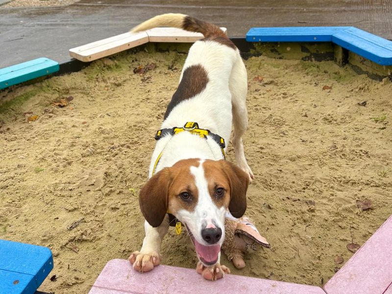 Are you right for Bertie?Bertie is looking for his forever home with adopters who can help continue his training. He would like adopters who are willing to help him settle in and are open to having a dog that exhibits strong breed traits. He loves getting his nose to the ground! Bertie will need help with loose lead walking as he can forget that you're on the other end at times and would benefit from being able to run off in secure fields or being walked on a longer line. Bertie can go home with a well-matched dog, but it will need to be a dog that can handle his playstyle, as he can be a little full on, but he does also know when to take a break. He could go home with livestock if interactions are managed. Bertie is a very friendly boy, and can get quite excited when meeting people, so he will need to be rehomed with children 12+ who are confident with dogs jumping up. Visiting children can be 10+ if interactions are supervised and they are confident. Bertie's future forever home will...