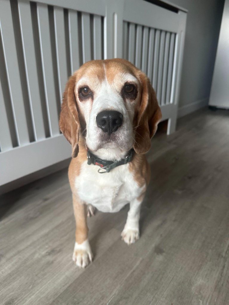 Blossom is a gentle, affectionate beagle with a lovely temperament. She enjoys human company, cosy spaces, and a steady routine. During the day she relaxes on the sofa, and at night she happily sleeps in her crate, which she sees as her safe space.She is house-trained, crate-trained, and settles well when left alone for up to four hours.