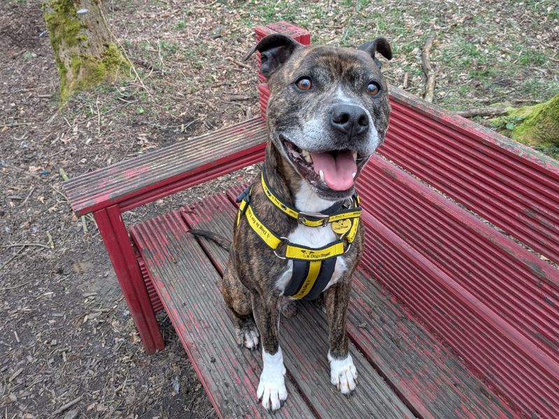 Are you right for Bruno?Bruno is a sweet, energetic 7-year-old Staffordshire Bull Terrier. He is a complete joy to be around and loves to snuggle up next to you on the sofa. Bruno adores his toys, especially playing his favourite game of fetch! Bruno can be a little worried around other dogs and is looking for understanding owners who can help build his confidence. Bruno can live with upper primary aged children and would like to be the only pet in the home. AWE licence number 13090 by West Lothian Council.