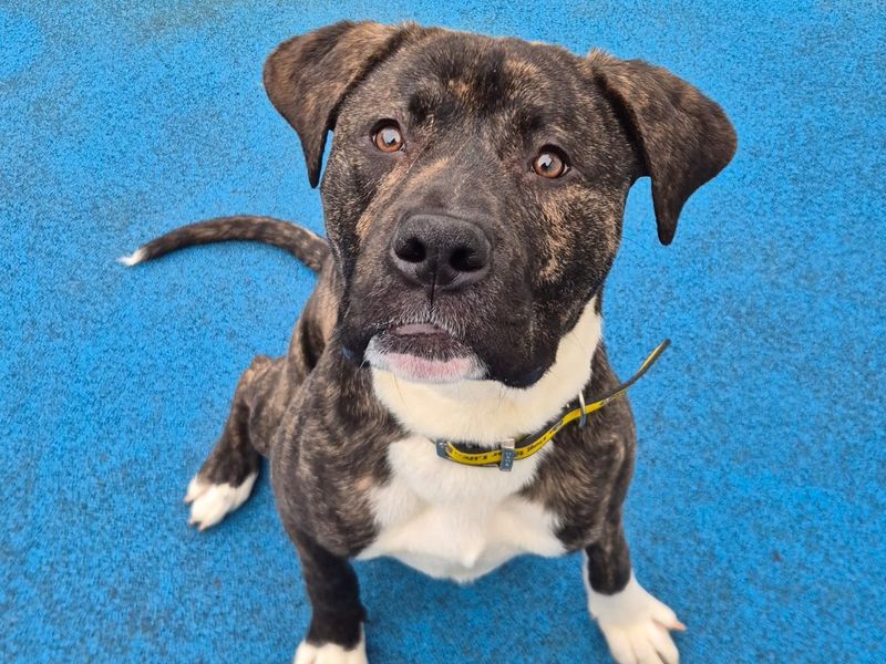 Are you right for Buzz?Buzz is a strikingly handsome 6-month-old Spanish Mastiff who is ready to go to infinity… and his forever home! Instead of fighting space villains, he’s conquering hearts one cuddle at a time. This charming young man could happily live with another playful dog and absolutely loves having walking buddies to explore the world with. He would be suitable to live with secondary school–aged children who are confident around larger breeds and understand that sometimes giant paws come with giant enthusiasm. As he is still a growing lad and learning the ways of the world, Buzz will initially need owners who are around most of the time to help him settle.