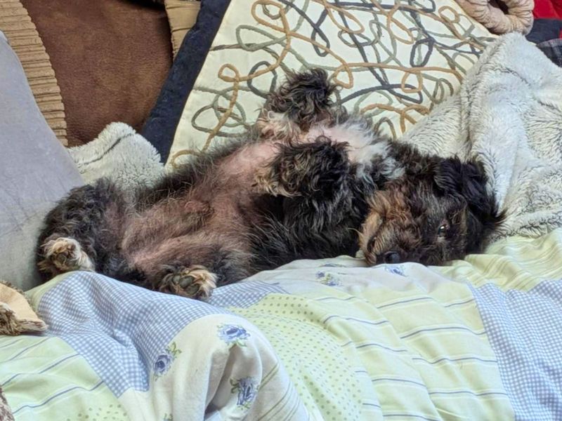 Are you right for Dave?Dave is a sweet 9 year old Poodle cross Terrier with a gentle nature and heart full of love! He's a real cuddle monster who enjoys nothing more than snuggling up with his favorite people after a nice, relaxed walk. Dave would suit a quieter home where he can enjoy a peaceful lifestyle and feel comfortable. He can be a little worried when meeting new people, so he's looking for someone that can give him the time and space he needs to settle in. A private garden would be ideal for Dave, giving him a secure space to potter around and relax in the sunshine. Dave can live with children age 11 and over who can give him the space he needs while settling in.