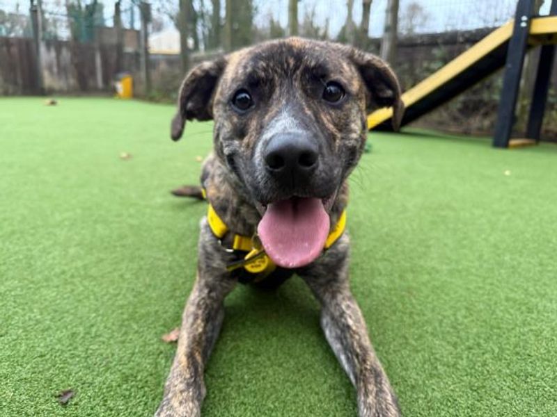 Are you right for Dex?Dex is a sweet 1 year old Staffie x German Shepherd who is very friendly and fun! He is looking to find a family who can give him constant companionship whilst he works on being left home alone comfortably. Dex is looking to have access to his own secure garden where he can burn off some energy, and work on his training.