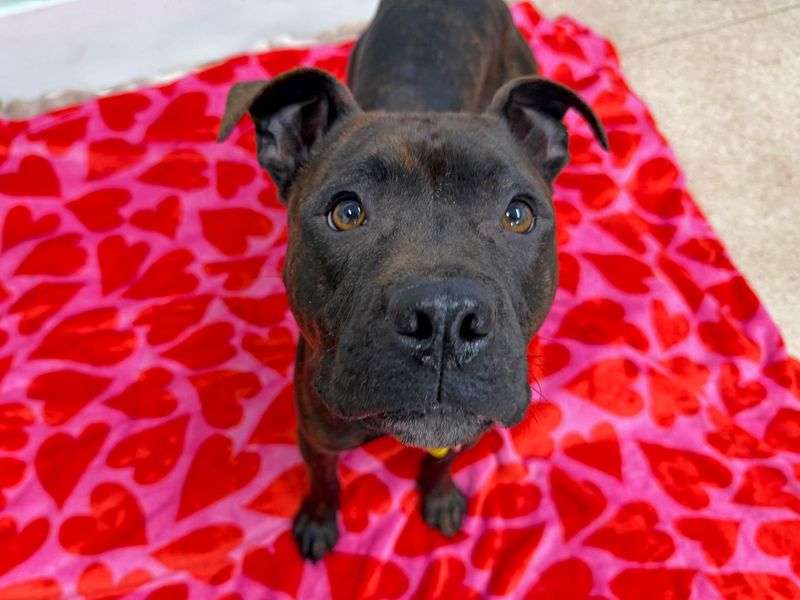 Dixie is a 1 year old Staffie who is hoping for her chance of a lifetime! She is very sweet and friendly and would love to find a home where she can continue her basic training. She is very smart and has some tricks mastered already and is also fully house-trained. Dixie could share her home with other dogs, as well as children around secondary school age.