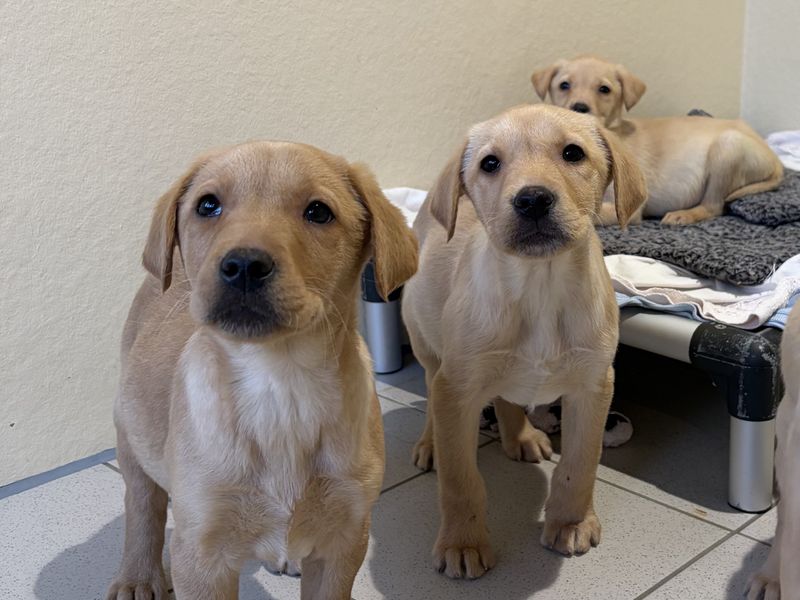 Are you right for Eeyore?Eeyore and his siblings are gorgeous Labrador puppies who are looking for their furever homes! They are 10 weeks old and are looking for adopters who have the time and commitment to give them the training and socialisation that puppies require. They will need someone at home for most of the day to help them settle and provide their basic training, house training and socialisation to give them the best start at growing into confident adult dogs. A large, enclosed garden space will be a great help for housetraining and give them a nice area where they can play to burn some of their puppy energy! Eeyore and his siblings could share their new home with other pets and children who would be happy to have a playful bouncy puppy coming into their home.How to help your puppy get settled into your homeIt may take your puppy a little while to settle in. Here's how you can help during those first few days and nights.
