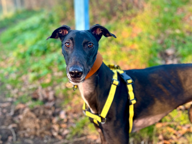 Are you right for Emmett?Emmett is a 1 year 8 month old handsome Lurcher looking for a home to call his own! He would like to be the only dog in the home and due to having a high prey drive would not be suitable to live with cats or small furries and will need to be walked on lead and muzzled when outside of the home. Emmett is currently working on his socialisation around other dogs the behaviour team will do through how to manage his interactions with his adopters to set him up for success in his new home. Emmett is a real foodie and providing his meals in enrichment such as food parcels, kongs and snuffle mats has been a great way to keep his mind busy. Emmett is looking for an adult only home that can help him settle in at a pace that suits him, he would like his bed and resting areas to be in a quieter area. Emmett has a sweet and cheeky nature he loves to have zoomies and can also be calm and cuddly.