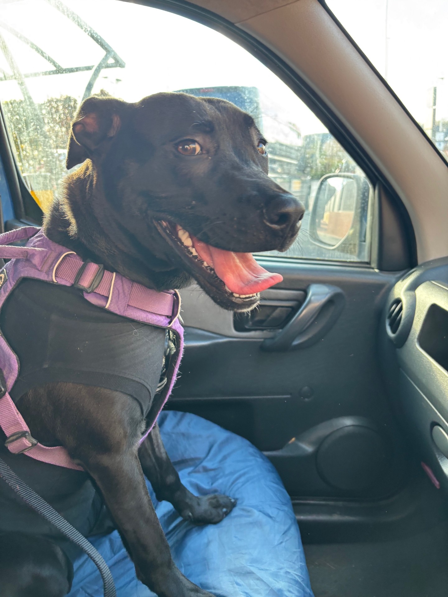 Please meet Eve, an approximately 1 year old petite Staffy cross (20kg) who was abandoned in a crate in our car park on New Years Eve.Even when faced with the situation of being left in a strange place with people she had never met …Eve met us with a shy but gentle wag of her tail and made firm friends with everyone very quickly!!Eve has now been neutered, microchipped and started vaccinations.Eve is a happy bouncy puppy who loves everyone she meets!! She is energetic and is learning not to jump up to say hi to everyone who stops to say hello to her!She enjoys her walks and is learning to walk nicely on the lead…she has had little training but is extremely bright, food motivated and keen to please!Eve has tested very well with other dogs and we feel she could live with a male dog of similar size who enjoys fast play… or as the only dog in the home but with someone who ensures she has doggy friends to play with.We cannot cat test Eve…so no cats or small furries.We have no experience wit...