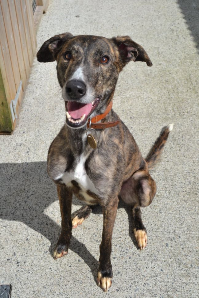 Finn is a very friendly and smart boy who knows many tricks and is very eager to learn. He had seperation anxiety, so may cry and bark when alone.Finn is one of our longer term residents, he would love a forever home. Please read the entire description before applying. Finn is a 5yr old Lurcher, he loves people and can be live in a home with teens and older. He is not suitable around kids as he hasnt been around kids before. Finn has been in rescue now over 2 years, so he will need a patient and understanding home who will allow him time to decompress and adjust when in a new home. He is a very smart boy, who loves to learn. He knows alot of tricks such as sit, down, paw, spin and jump up. He has alot of brains and would thrive in a home who loves training. He loves food, cuddles and playing with his toys. He loves playing fetch and going for long walks. Finn does have lead reactivity, we are happy to cover some training sessions to help with this, with one of our approved dog trainers...