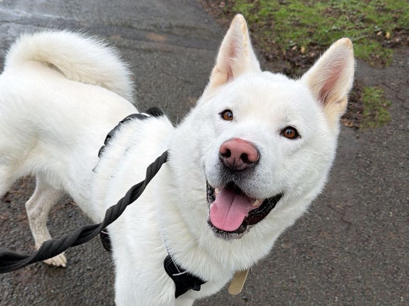 Are you right for Ghost?Ghost is a handsome 2-year-old Akita. He is a lovely, gentle lad, but can be anxious around handling; young children wouldn’t be suitable, but he could live with older children as long as they are happy around big dogs. He will need active adopters who are happy to take him out for exercise in all weathers and whilst he is happy to have walking buddies, he will need to be the only dog in the home. Ghost struggles when left so he will need his adopters to be around most of the time whilst he settles in. Ghost loves spending time outside so a secure and enclosed garden will be needed for this.