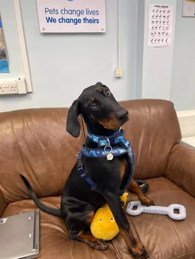 I'm a 4-month-old Doberman from Sheffield rehoming, advice and behaviour unit and I'm looking for my forever home. Please read my profile below to find out more.Thanks for clicking on my profile. I have now been matched with a loving family and I’m looking forward to settling in at my new home. However, many of my friends still need adopting.Hati is a bright, friendly and affectionate young girl who has made a fantastic start in life and is now ready to find her future family. She’s a confident, people oriented pup who loves interaction and quickly builds positive relationships with new people.She enjoys playtime, especially with toys she can chase or carry, and is gentle and well mannered during games. She’s also comfortable being handled and enjoys fuss, grooming and having her harness put on and off. Weighing at 20kg, Hati is going to only keep growing as she blossoms into an adult dog!Hati needs a patient home that can help her transition into her new environment, as she adjusts an...