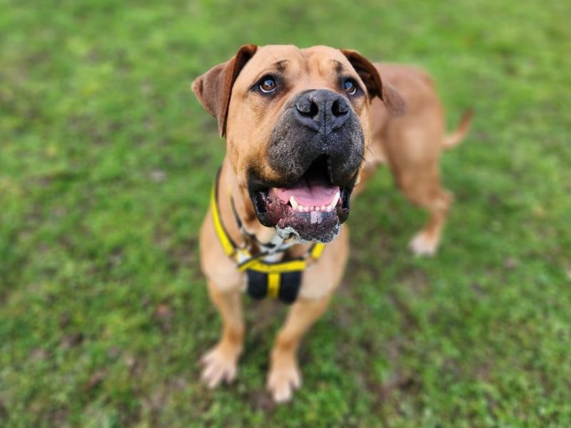 Are you right for Helga?Big, beautiful and slobbery Helga is a 2 year old Boerboel who is a real cuddle bug. She is the perfect sofa buddy who loves a fuss, she will lean on you for more, and will nudge you if you stop stroking her. She is a foodie girl and will take any treat offered gently from the hand, leaving a bit of slobber behind. She likes to chase around with her favourite toys and people, she hasn’t learnt to bring the toys back yet.