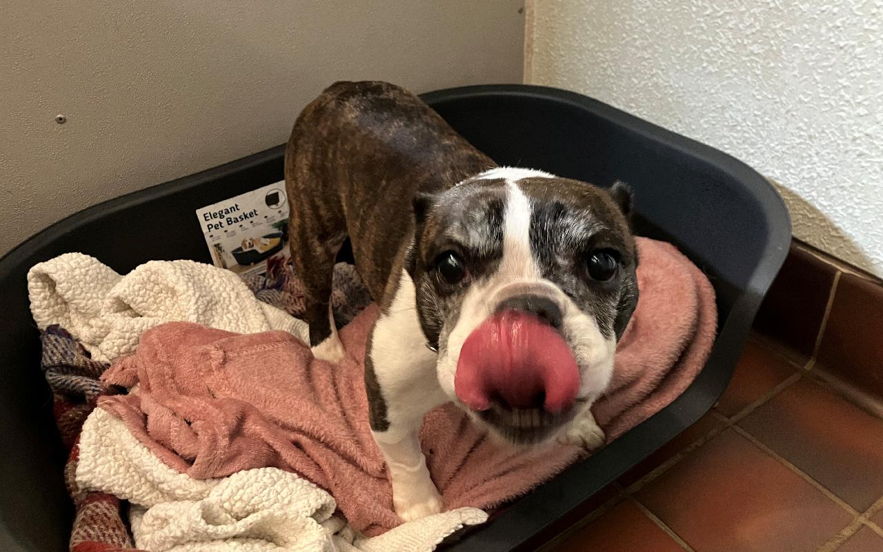 A lovable, low-energy dog with a wrinkled face and calm nature.