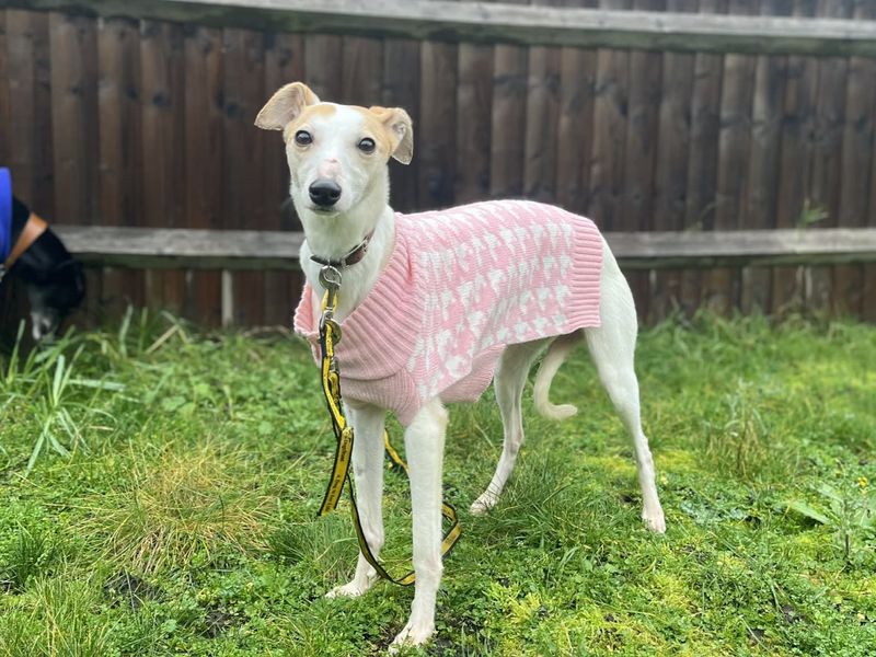 Are you right for Mavis?Mavis is a wonderful Whippet who is residing out in a foster home. Due to her nervous nature, she is best suited to a home where children are of secondary school age and are able to give her space whilst settling into her new home. Mavis is looking for a home where there is already a confident resident dog to help build her confidence and teach her that humans aren't all that scary! She can also live with cats as has had positive interactions with them whilst out in foster.