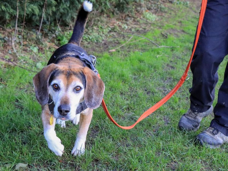 Are you right for Milo?Milo is a joyful 5-year-old Beagle/Hound cross who is searching for an active family that loves hiking and long walks. Fans of the breed will know what to expect as he displays a lot of the typical traits. This means that he might be more focused on sniffs than new people, but he does warm up quickly and forms strong bonds with his people. He also has a big appetite and will do anything for a tasty treat. Unfortunately he likes food a little too much, and will need some management around food and especially in the kitchen. Milo would love his family to give him a private dining experience (he’s just that posh and exclusive, you see!) Milo needs to be the only pet in the household but he does enjoy socialising with other dogs on his walks.