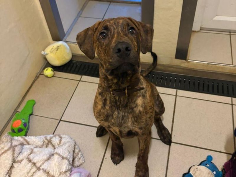 Are you right for Mousse?Mousse is a 5-month-old Spanish Mastiff x Dobermann sweetheart with the softest soul and the biggest heart. He is looking for a family who have breed experience or have had giant sized dogs before. This lovely little lad absolutely adores people and wherever you are, that’s exactly where he wants to be. He has two great loves in life: cheese and cuddles. Mousse loves cheese so much we’re starting to think he might be part mouse! And when it comes to cuddles, he gives them out like they’re going out of fashion! Mousse would benefit living with another playful dog, he enjoys having doggy walking pals. He can live with older primary school-aged children who are comfortable with bigger breeds and is okay being left up to 4 hours.