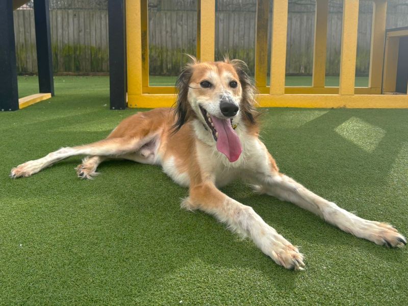 Are you right for Norman?Super fun and clever boy Norman is a 3 year old Saluki who loves to learn a new trick or two. He is a bouncy boy and loves to bound and chase around after his balls and raggy toys, sometimes he isn’t interested in his toys and will happily chase around with his favourite humans instead. He is a cuddly guy and will come over for a fuss, leaning in for more if you stop too soon. This sweet and playful lad is on the hunt for his new home.