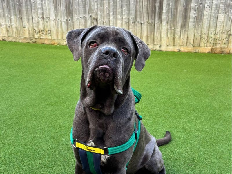 Are you right for Olaf?Olaf is a 1-year-old Cane Corso with a heart as big as his paws. He’s looking for a home with children aged 7+ who are comfortable around a large, bouncy young dog. Olaf could potentially live with another dog of a similar size, following a successful introduction at the rehoming centre. As a growing boy with mild hip dysplasia, Olaf will benefit from an adopter who understands the importance of sensible, structured exercise to help him build strength while protecting his joints. A home that enjoys training, enrichment, and plenty of quality time together would suit him perfectly.