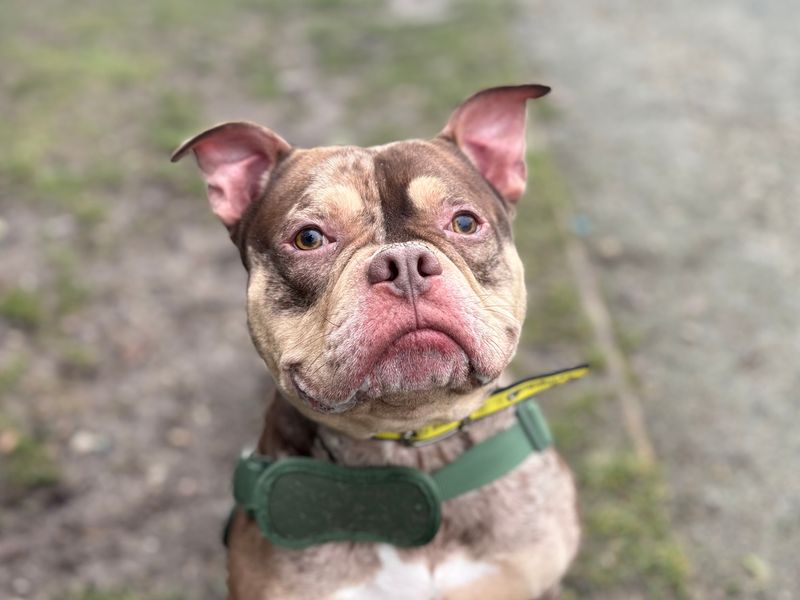 Oreo is best suited to a home with children of secondary‑school age or older, where adults can take the lead with his walks. He would thrive as the only dog in the home but would benefit from continued positive dog socialisation while out and about. As he has shown interest in chasing smaller animals, he’ll need a home without cats and will need to be kept separate from small furries. Oreo prefers to have company and has not been left for long previously so his new family should be willing to build up his leaving hours gradually to help him feel secure and settled.