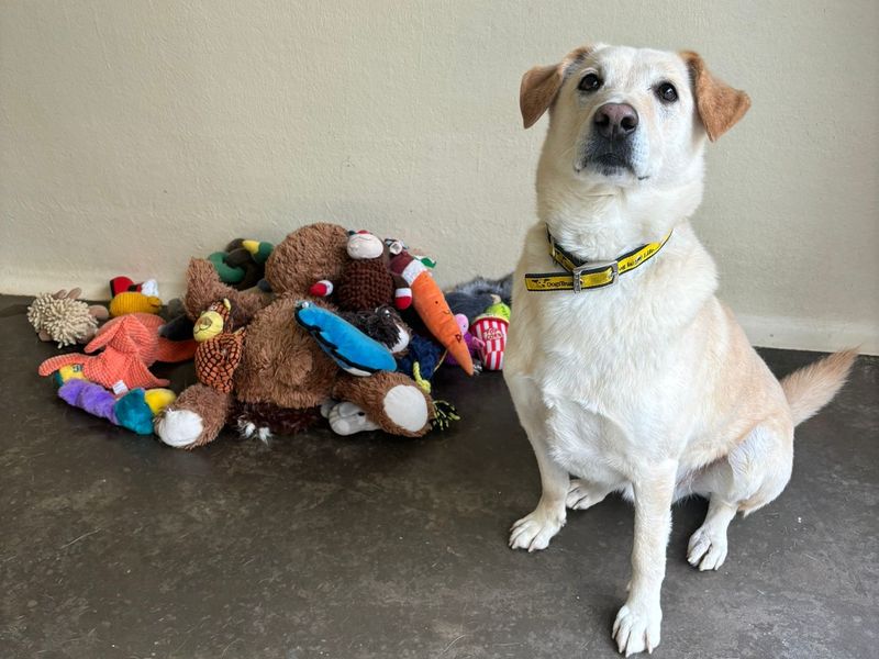 Are you right for Pepe?Pepe is a golden-hearted three-year-old Labrador who bursts with joy the moment a new toy appears — his whole face lights up as if he’s just won the lottery! This gorgeous boy came to us through no fault of his own and has been charming everyone he meets ever since. Pepe would love to be the one and only pet in a peaceful, adult-only home where he can enjoy plenty of space to relax. He’s happy to head out on adventures with a few smaller doggy walking pals, but some situations, such as trips to the vets, can feel a little overwhelming for him. To help him feel safe, Pepe wears his stylish little muzzle and has been doing brilliantly with his training alongside his best friend, Sara.
