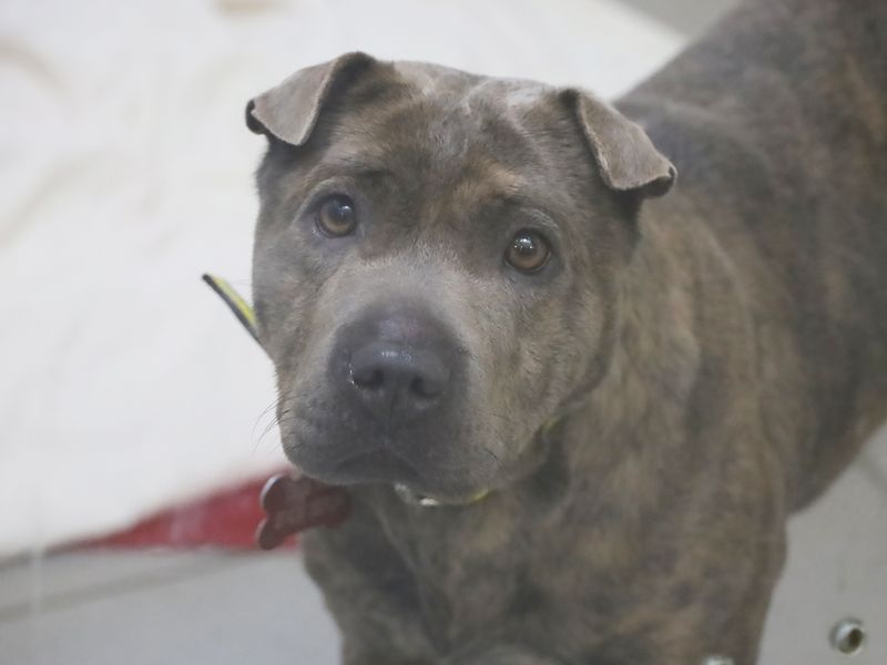 Pepper is a gorgeous 2yr old Shar Pei Bull Terrier Crossbreed who is looking for a new family who will give time and space to settle into a new home. She's found kennel life a bit confusing so has been a little shy of new people, but we've seen that with a little time and patience she soon comes round. She'll be fine with older kids who understand to let her relax when she chooses to. She's been OK with other dogs out and about but she doesn't want to share her home with any other pets. She'd also love her own secure garden as she does enjoy playing off-lead.