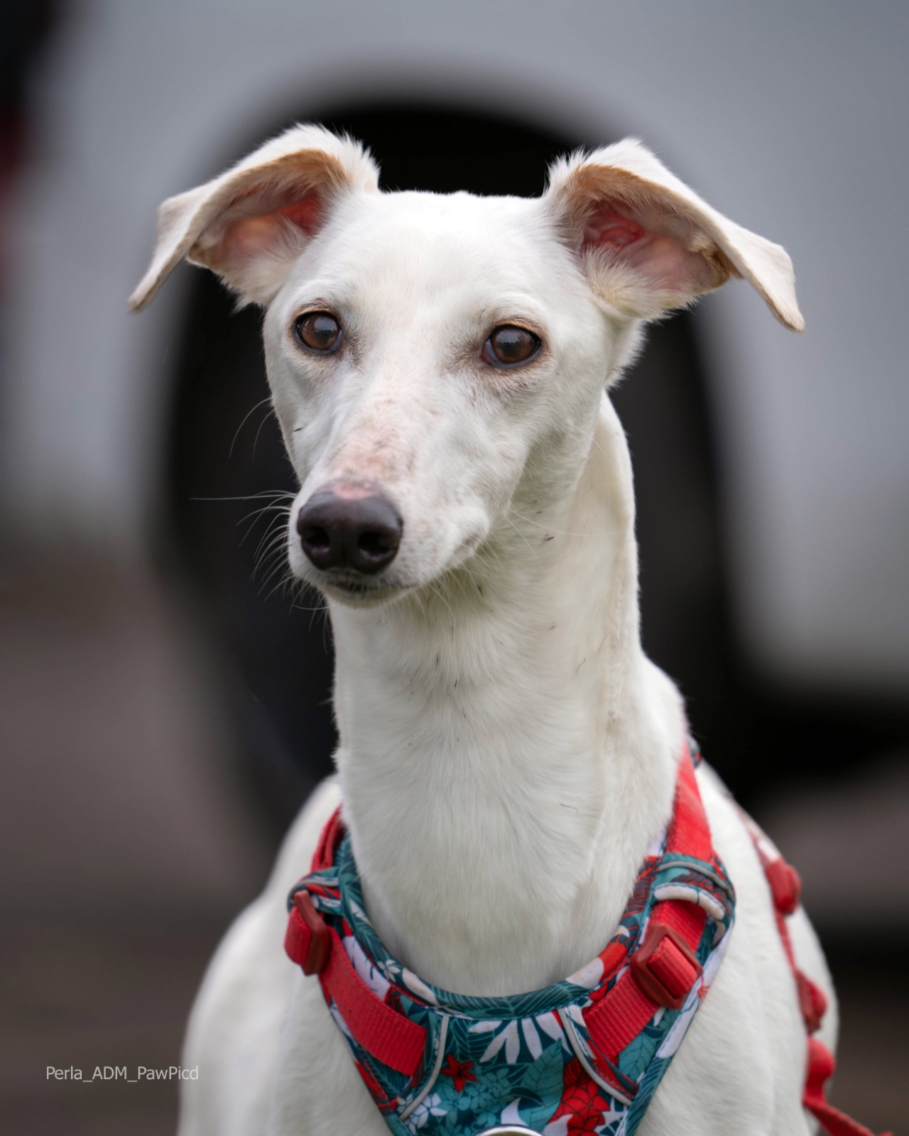 Can Perla live with cats? No cats pleaseCan Perla live with dogs? Still Under assessment will update soon .Can Perla live with children? Could live with children 10+Perla is a very pretty girl who has continued to make a wonderful impression since arriving. She is a very sweet, cuddly and lively girl who loves affection and enjoys being around people.As a sighthound breed, Perla does have a prey drive, so she will need to be walked on a lead. She will also need direct access to a secure garden where she can enjoy her zoomies and have space to play and stretch her legs.