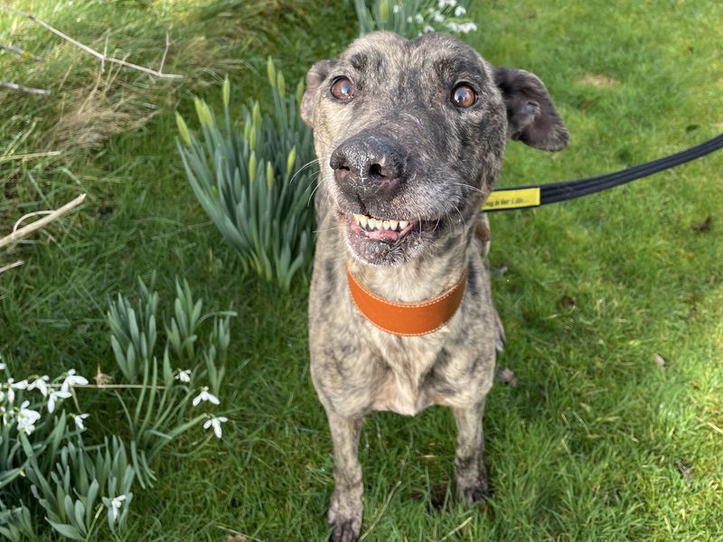 Are you right for Phillip?Are you looking for a lounging lurcher to join your home, Phillip will love the comforts of the sofa, the bed and spreading himself out in the sunshine. Phillip walks nicely on the lead most of the time, although can get a little giddy and pull. Although this isn't strong pulling and is easily managed. Phillip does like to seek attention and will bump into you for scratches! He takes treats gently and loves the cheezy or smelly high value treats! He knows sit and paw and has even given us a high five!