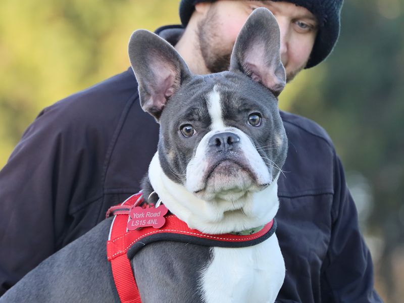 Are you right for Pippin?Pippin is a lovely 8-month-old French Bulldog Crossbreed who is looking for his forever home. He's a little shy when you first meet him, but he soon comes round with a little space, and a few tasty treats! Once he's comfortable with you you'll see what a fun, playful and snuggly boy he really is. e's fine around other dogs, but can be choosey about who he interacts with. He could potentially share with another chilled dog like himself, but will be equally happy as the only pet.