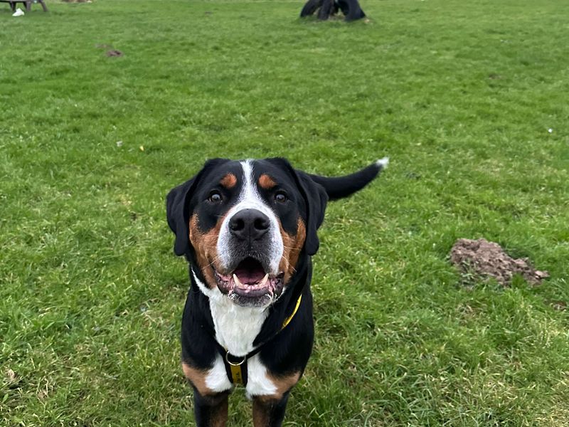 Are you right for Roxanne?Roxy is a 3 year old Great Swiss Mountain Dog looking for a special home to call her own. Roxy is a big, lovable girl, once you know her, she takes a little time to suss people out and can be nervous, expecially of new men initially. Roxy's new home would ideally have experience with large breed dogs and have the time and paitence to continu some of her training needs. Roxy is looking for a home where everyone is over 16 and where she can get enough mental and physical stimulation. Roxy is undersoalised with dogs and so would be better living with no other dogs in her new home, she could possibly live with another large breed dog who could show her the ropes but cannot live with smaller dogs or cats.
