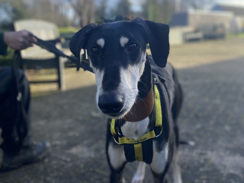 Are you right for Rupert?Meet Rupert – the life of the party and your future best friend! This bouncy boy loves nothing more than galloping around with a big goofy grin. He’s full of energy and full of love, so he’s looking for a family who can keep up with his zest for life and give him all the love and attention he deserves. Rupert is a social butterfly with other dogs and would be thrilled to have a canine buddy at home or some regular walking pals. He’s so friendly that he could happily live with calm, sensible children aged 5 and up. He’s a big foodie (seriously, snacks are his love language!), which makes training fun and will help him build confidence with things like car rides. Rupert can be left for short periods, with this leaving hours being built up gradually, but he’d much rather be out exploring the world with you! As he's a bouncy boy, 6ft fencing is a must!