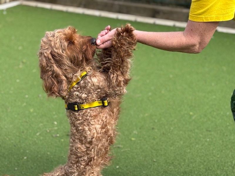 Are you right for Teddy?Meet gorgeous lad, Teddy! Teddy is a 4-year old Cockapoo looking for his forever home! Teddy could go home with another resident dog pending a successful meet at the centre, and children 8yrs+. He is a sweet, friendly chap who is wonderful with humans and dogs alike. He loves to say hi to his doggy friends, but is also able to show a good level of independence also. His favourite things in the world, are long, sniffy, exciting walks where he can tire himself out with all the sights and smells! He loves fuss and cuddles, and is very gentle and loving. Teddy would love an active home that are able to take him for all the adventures - he travels very well in the car - and then snuggle up with him on the sofa in the evening. Teddy walks well on the lead, but can sometimes pull if he's feeling spritely. We can't wait for this perfect boy to find his forever home!