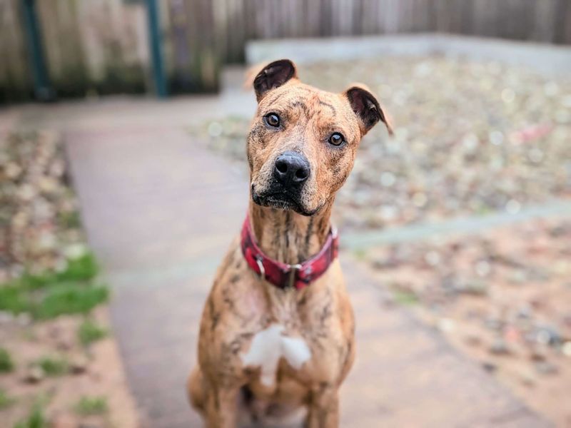 Tiger is a happy chappy wanting to make friends with every person he meets! Full of energy and fun but also a calm natured lad, Tiger is 1year and 7months so has lots of energy for a fun household. You'll get the best of both words with Tiger because he settles well when you need him to but also has the energy for some fun adventures! Tiger can live with children the ages 11+ and although not able to live with another dog currently, he can have calm larger doggy friends! Tiger came into our care as a a stray from another rescue so we don't have any history for him, but he is proving to be a staff favorite here at the centre. Tiger has lots of love to give and he is a striking Brindle boy with unique front legs which don't cause him any issues, he's just a little bit Bendy on his front legs!