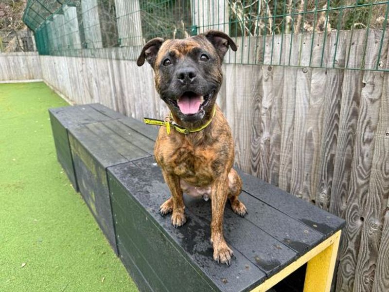 Are you right for Toast?Toast is a 6 year old Staffie who is a total smartie pants and loves her toys. She is super friendly and has more passion and more energy than most! Toast could live with other dogs, as well as secondary school aged children. Toast doesn't require a garden, however a high fence would be required if she did have access to a garden as she sure can jump!