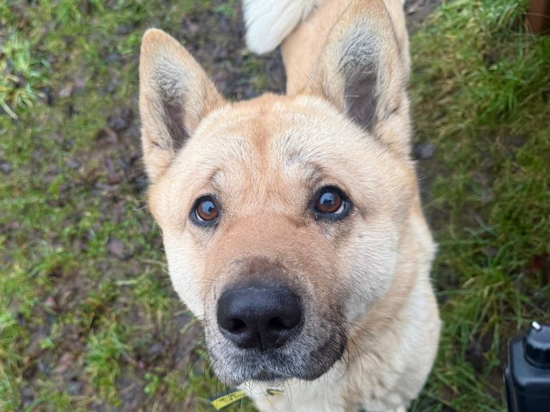 At 5 years old, this adorable Akita cross is all about people, snuggles, and exploring the world. He’ll nudge your hand for “just one more fuss” and is guaranteed to bring warmth, goofiness, and lots of love into his new family. Due to his gentle nature, Zeus could live with primary school aged children. Zeus would be happiest as the only pet in the home, however, he would really benefit from having doggy walking friends and ongoing socialisation. As Zeus is happiest with people by his side, he needs a family with low leaving hours initially. He can be a bit worried by himself, so leaving hours would need to be built up gradually. Being a big boy, Zeus would love a garden of his very own to zoom around in (with 6ft fencing please!)